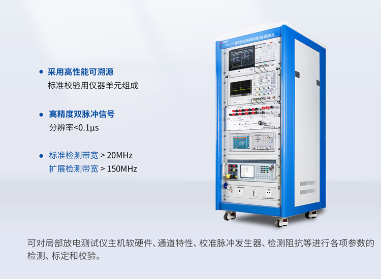 整个系统的信号源和采集处理装置全部采用高性能可溯源的标准校验用仪器单元,各单元组网后在电脑控制下协调工作,实现自动校验或特定功能校验。通过自动控制输出每个校准步骤的校准波形和量值,同步记录被校设备的输出数据,确保测试数据的高度准确性与重复性。可对局部放电测试仪主机软硬件、通道特性、校准脉冲发生器、检测阻抗等进行各项参数的检测、标定和校验。